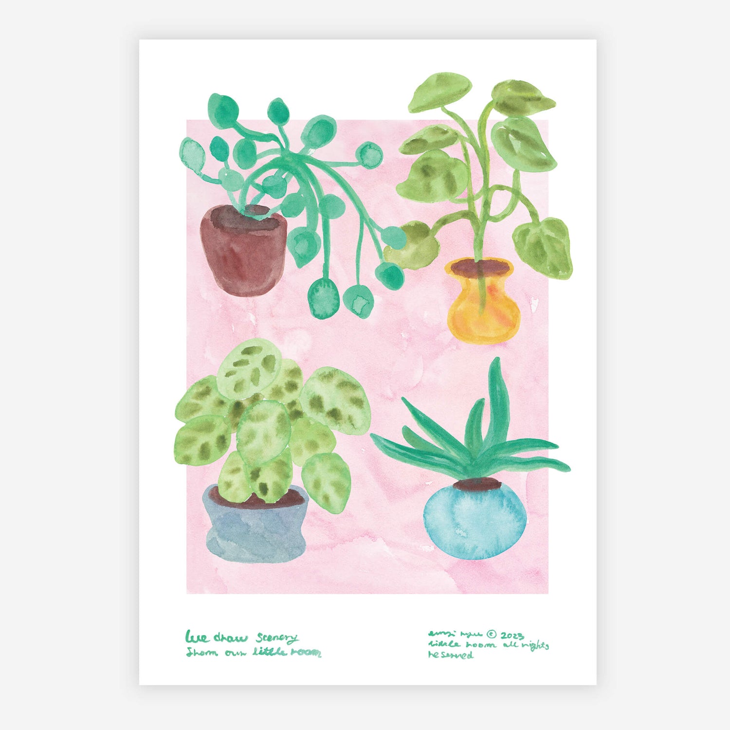A riso print poster with illustrations by Eunji Ryu from Little Room.