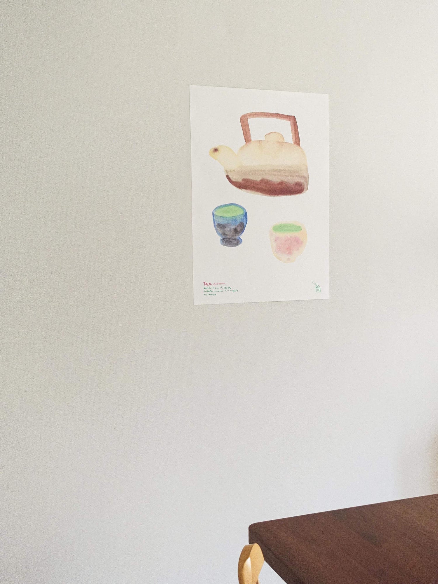 A poster to place in a cozy space for sharing a warm cup of tea with your loved one.