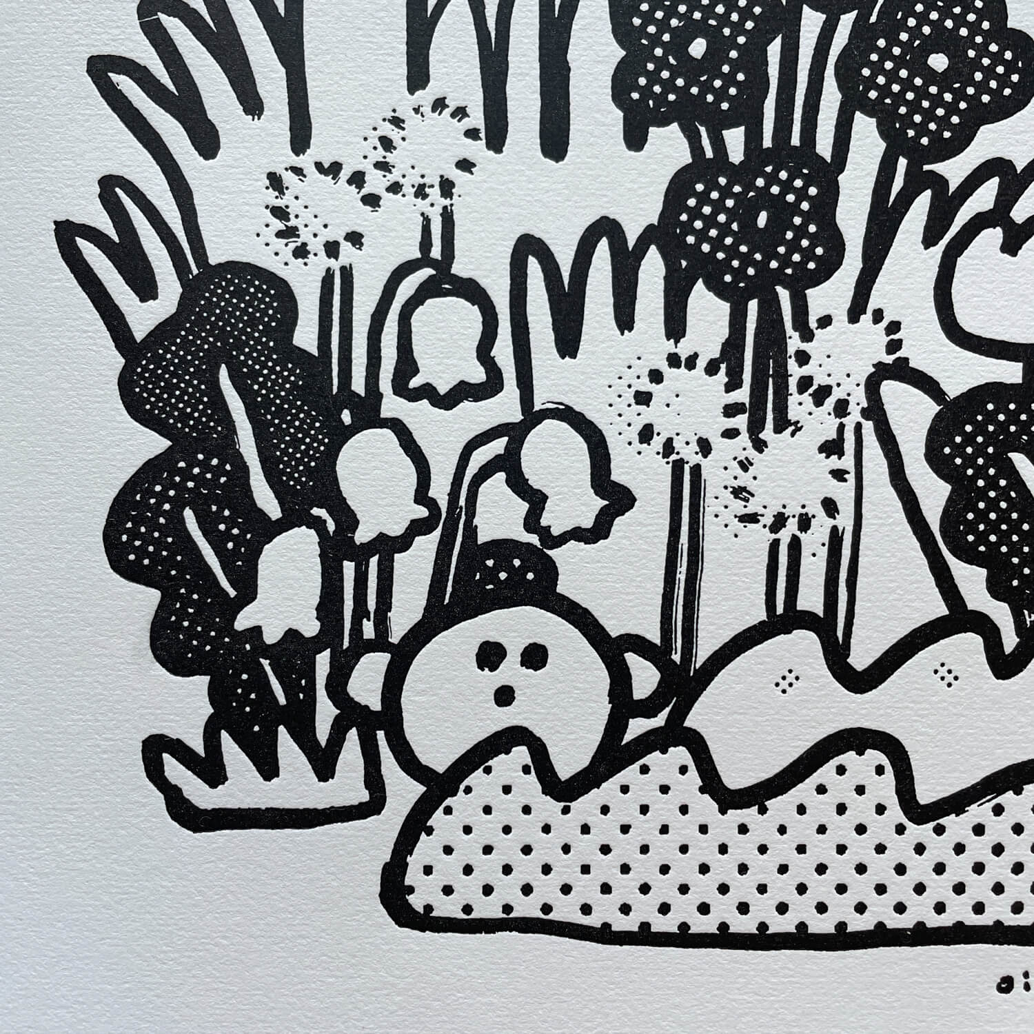 A letterpress art print with illustrations by oitama.