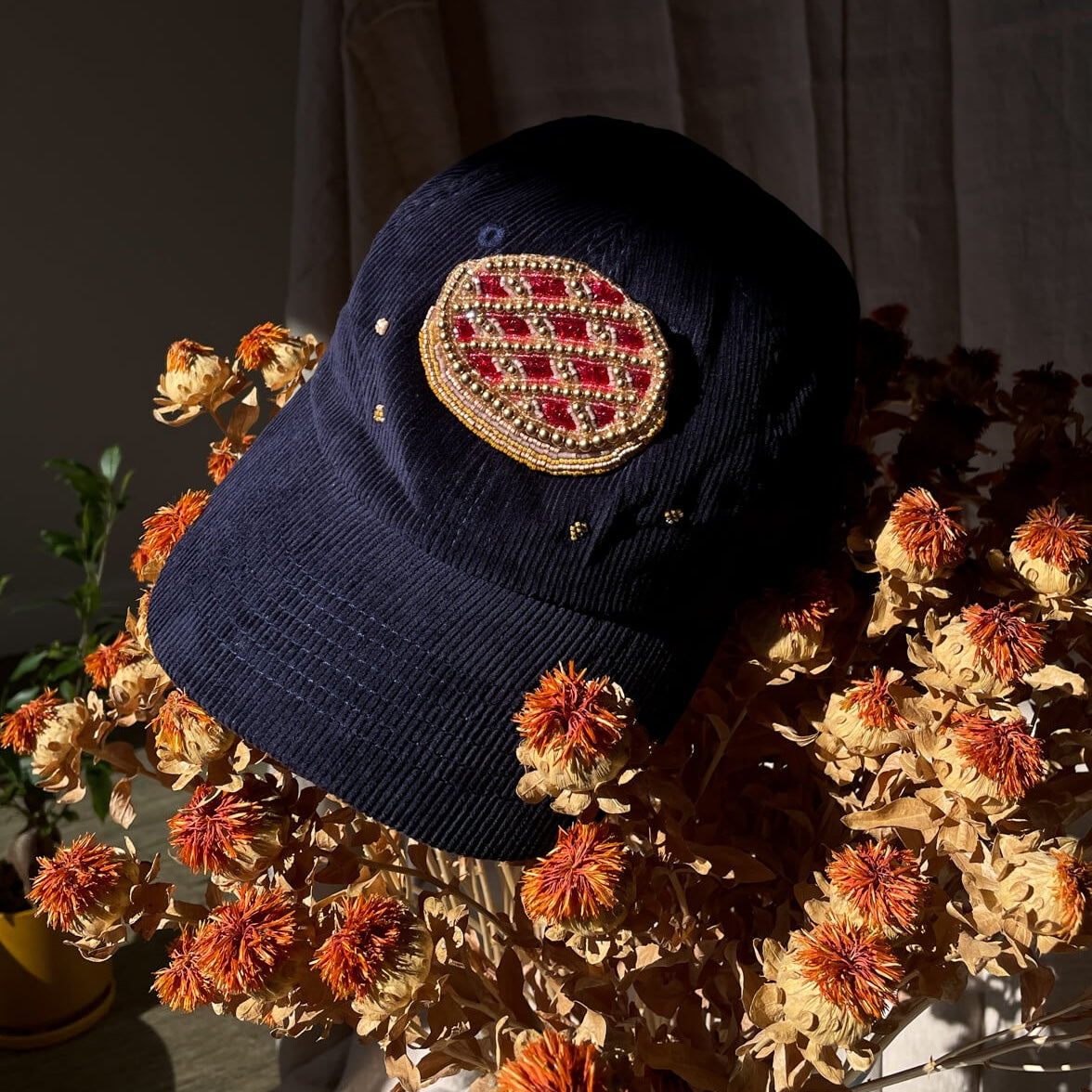 A handmade beaded brooch from Crepe by Mutsumi Yoshimaru, a Japanese beading artist.