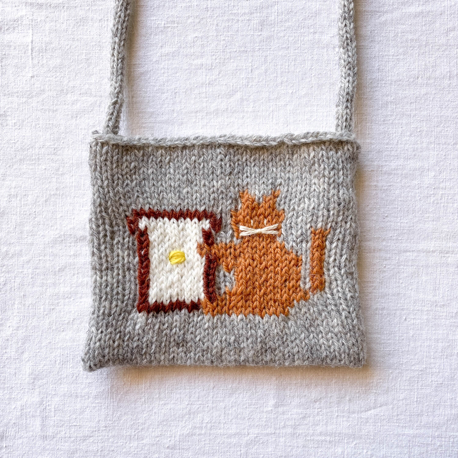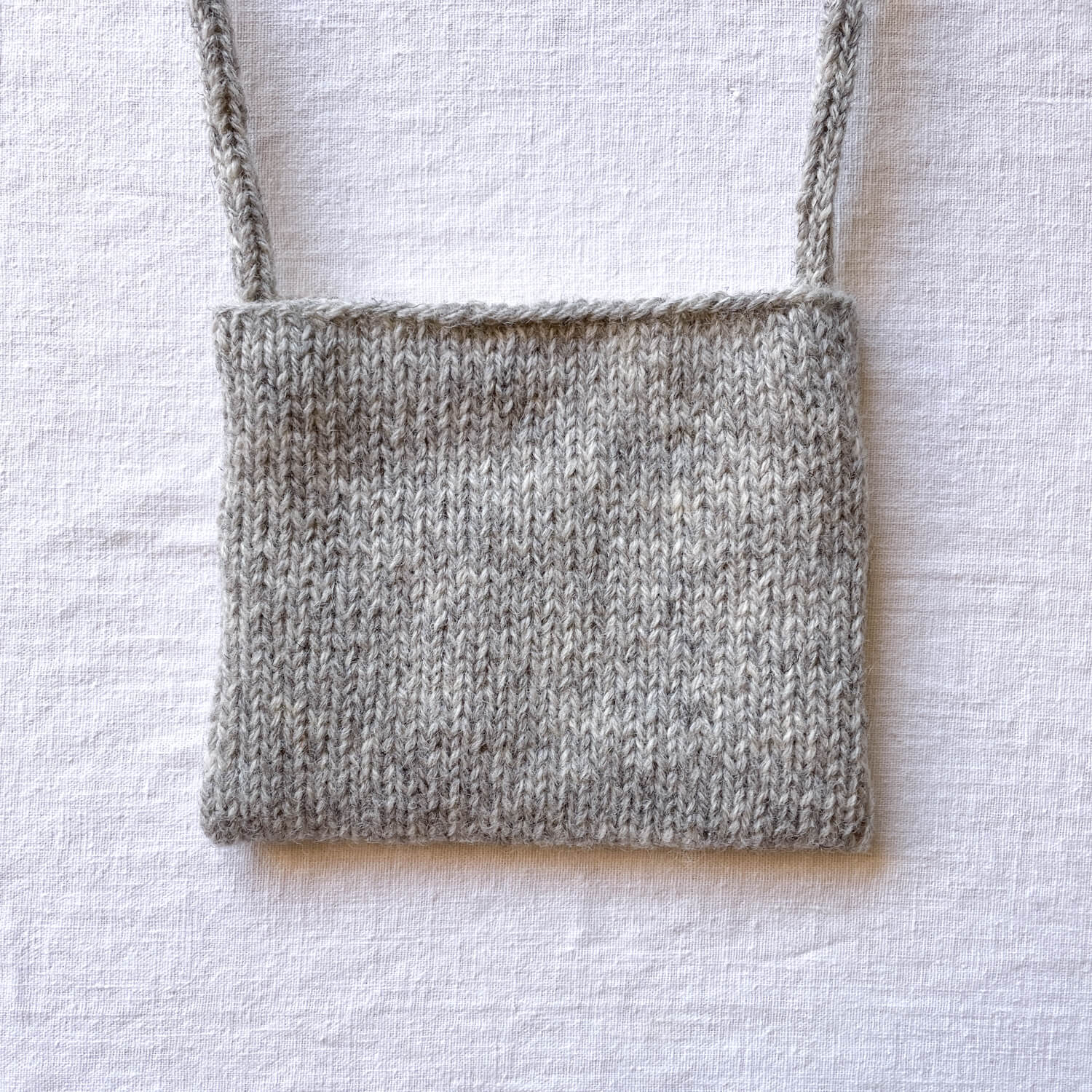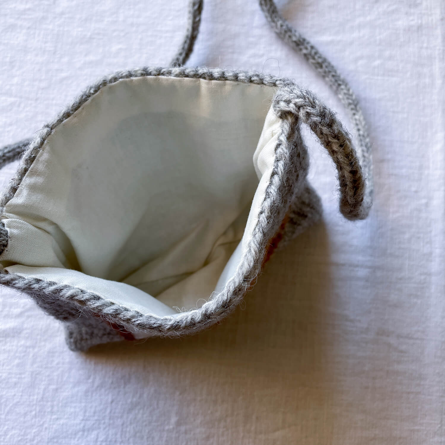 Handknitted shoulder bag by Hitonatsu Yamashita, a Japanese knit artist.
