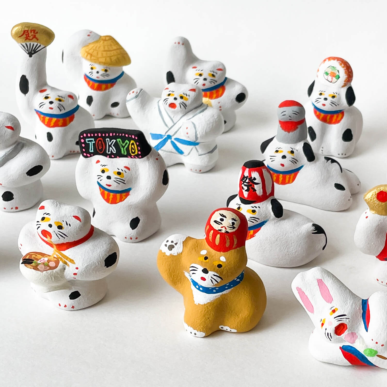 A handmade clay doll of dog by habotan , a Japanese artist based in Tokyo.