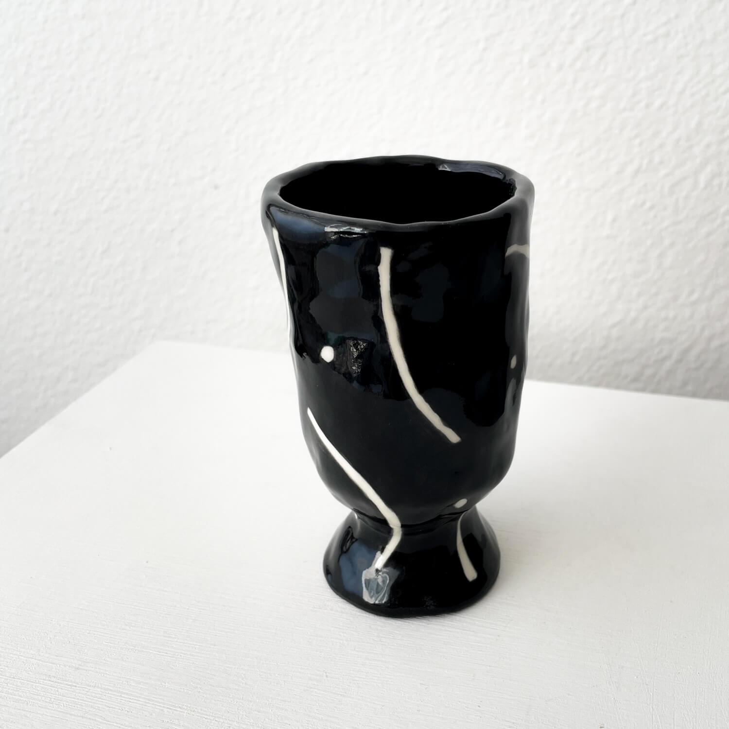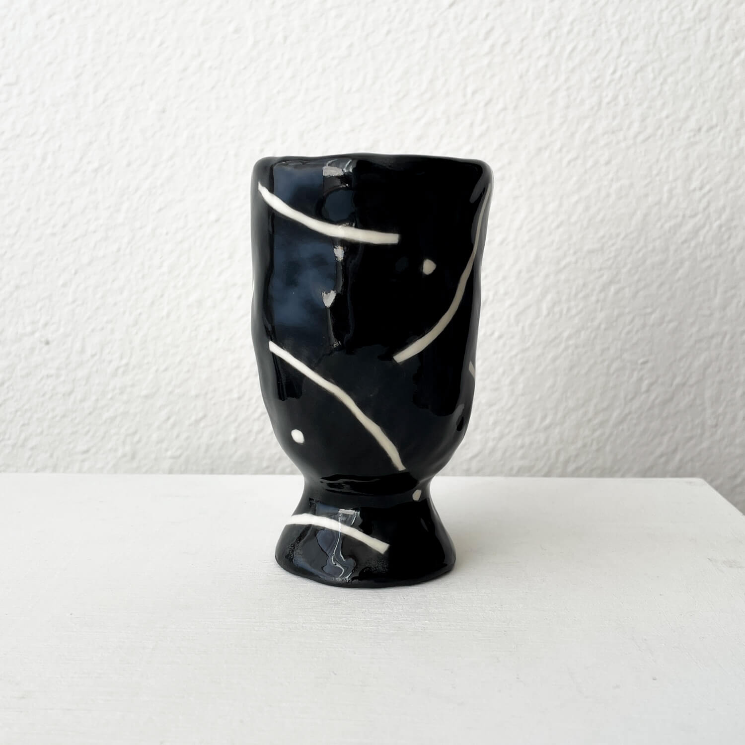 One-of-a-kind ceramic pot with monotone geometric patterns by Yusuke Mashiba.