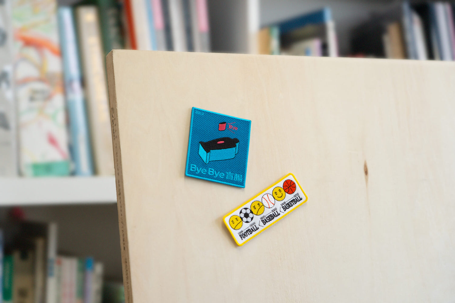 An iron-on patch from Have a Good Day - an emblem diary that portrays daily life events of the graphic designer Ren Yamakawa.