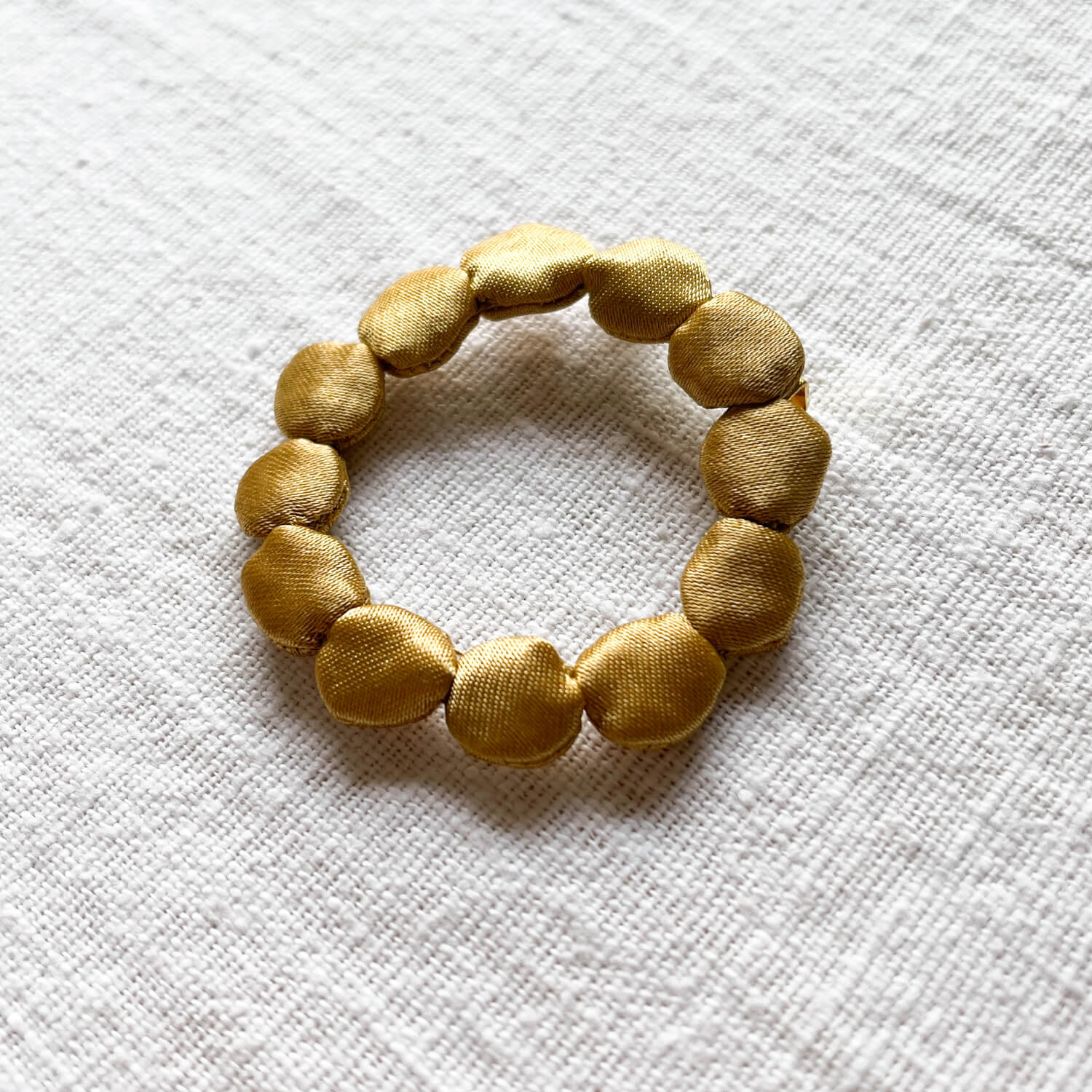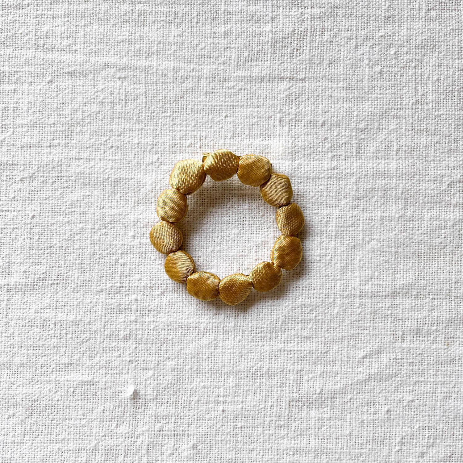 Materials: Made with cotton, polyester, beads, acrylic gouache, and brass, etc.