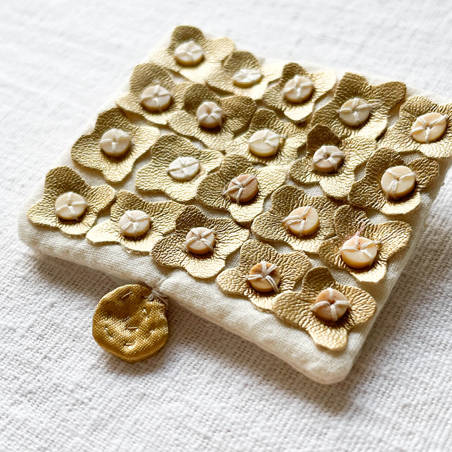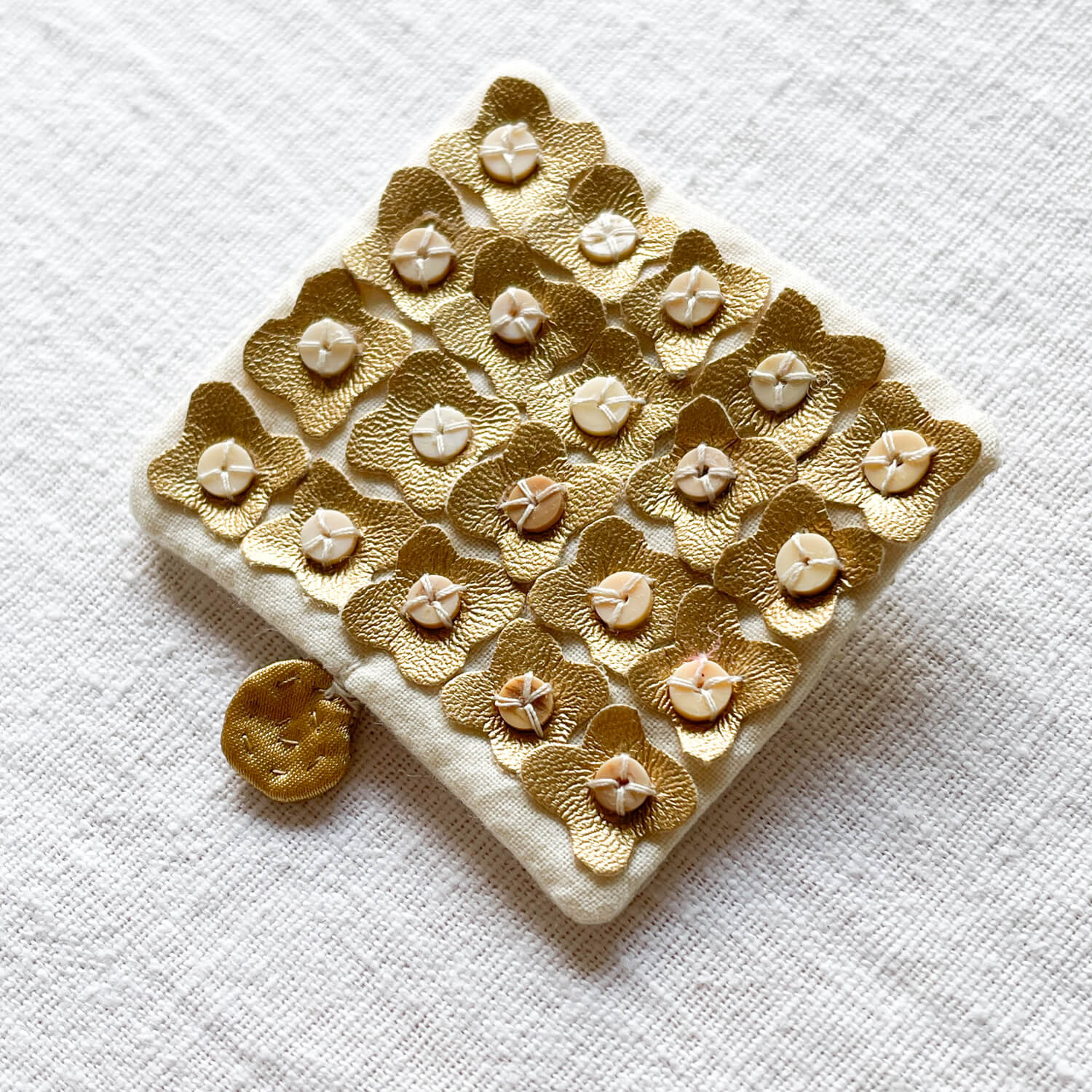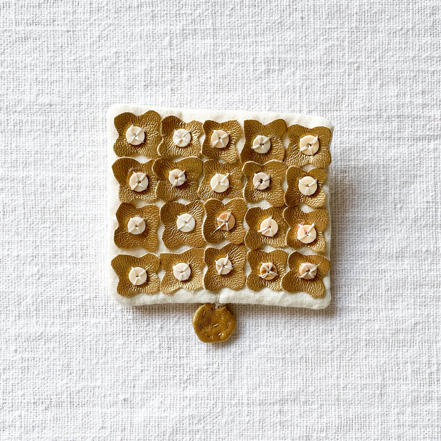 Materials: Made with cotton, polyester, beads, acrylic gouache, and brass, etc.