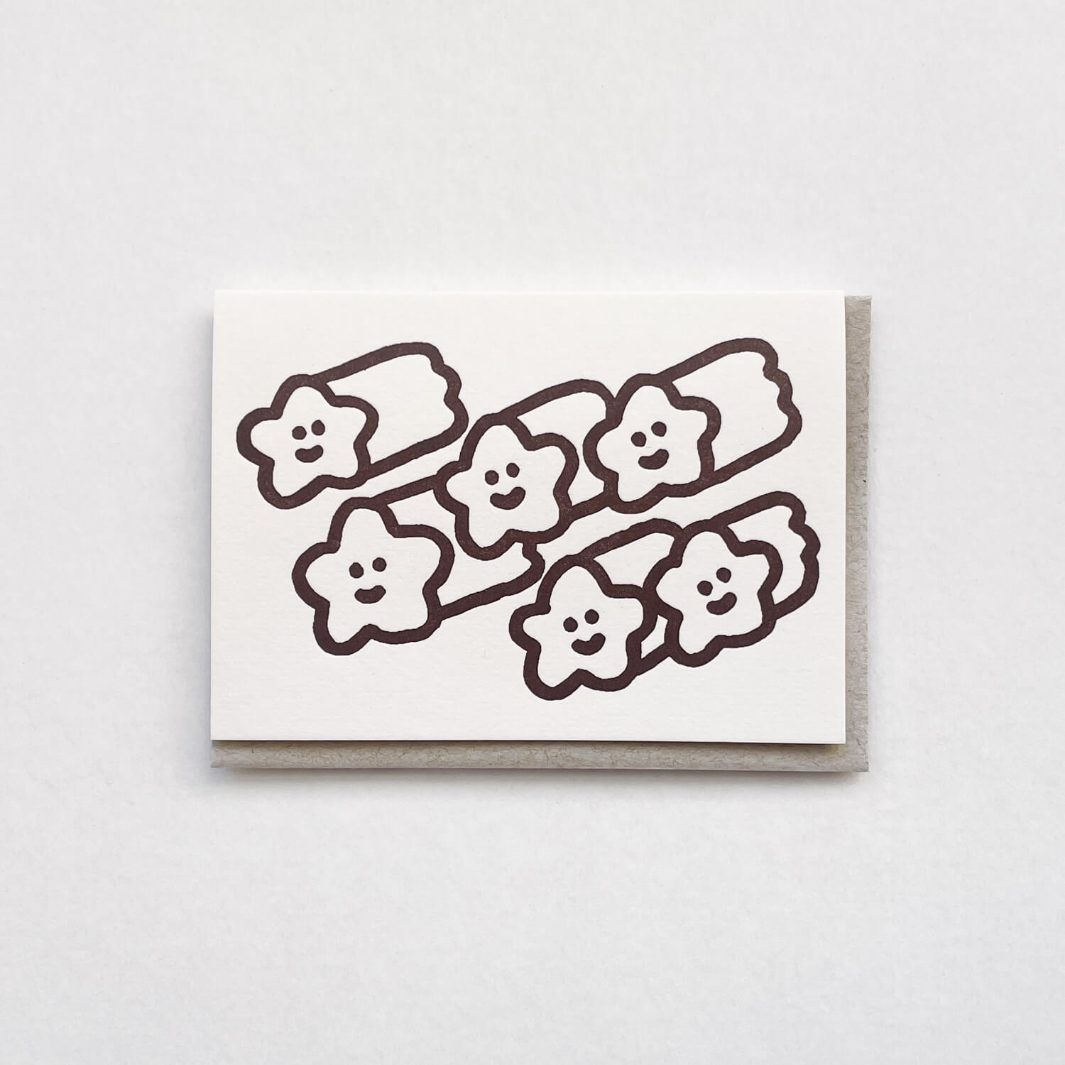 A letterpress greeting card with illustrations by oitama.