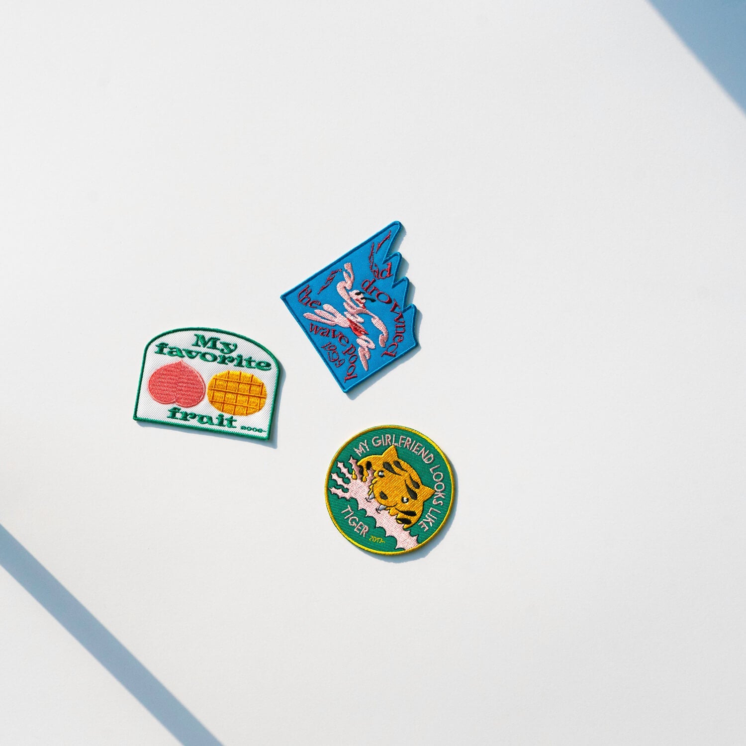 An iron-on patch from Have a Good Day - an emblem diary that portrays daily life events of the graphic designer Ren Yamakawa.