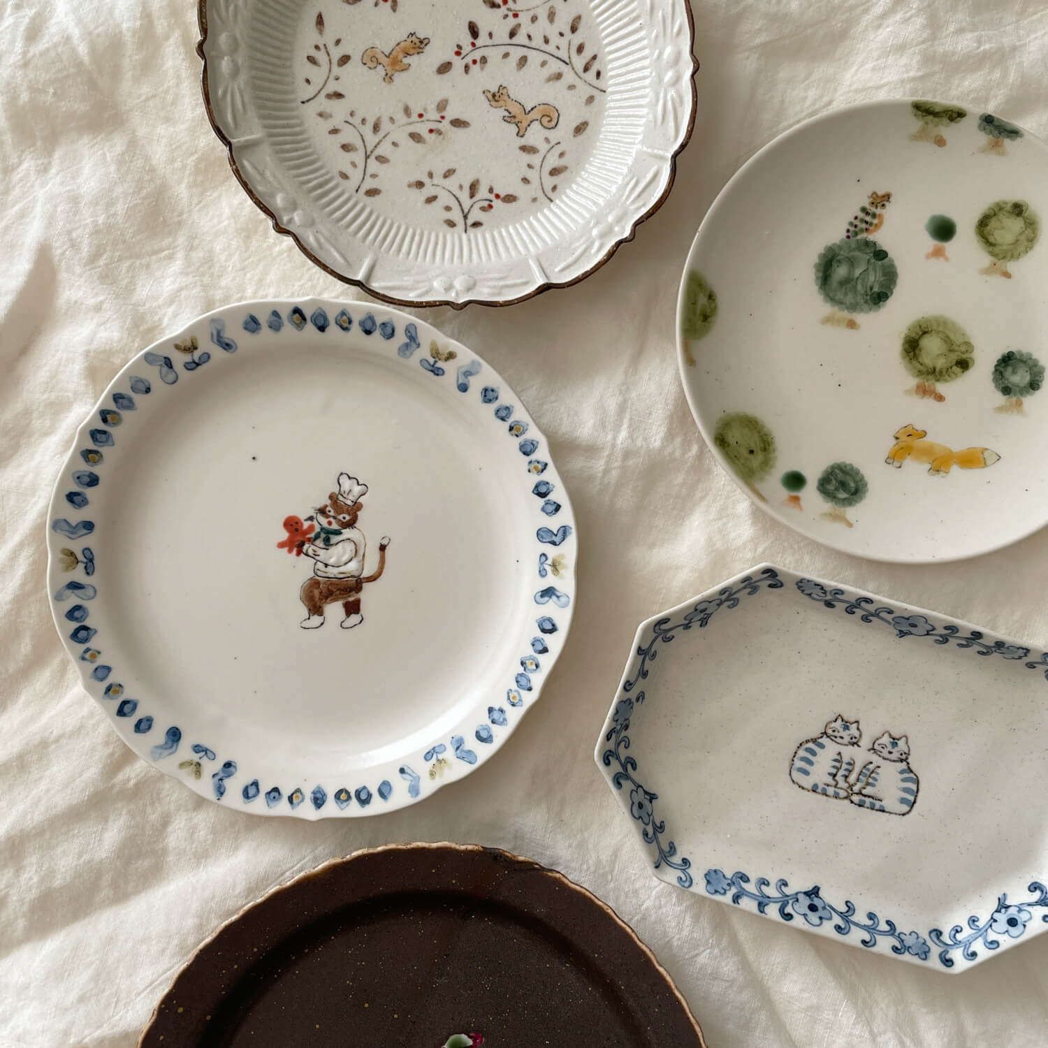 Hand made and painted plate by Chiharu Yoshino, a ceramist based in Oita, Japan.