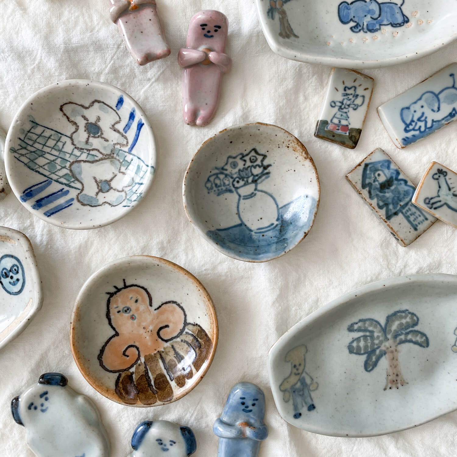 Hand made and painted plate by Chie Chihiro, a sister duo ceramist/illustrator based in Saga, Japan.